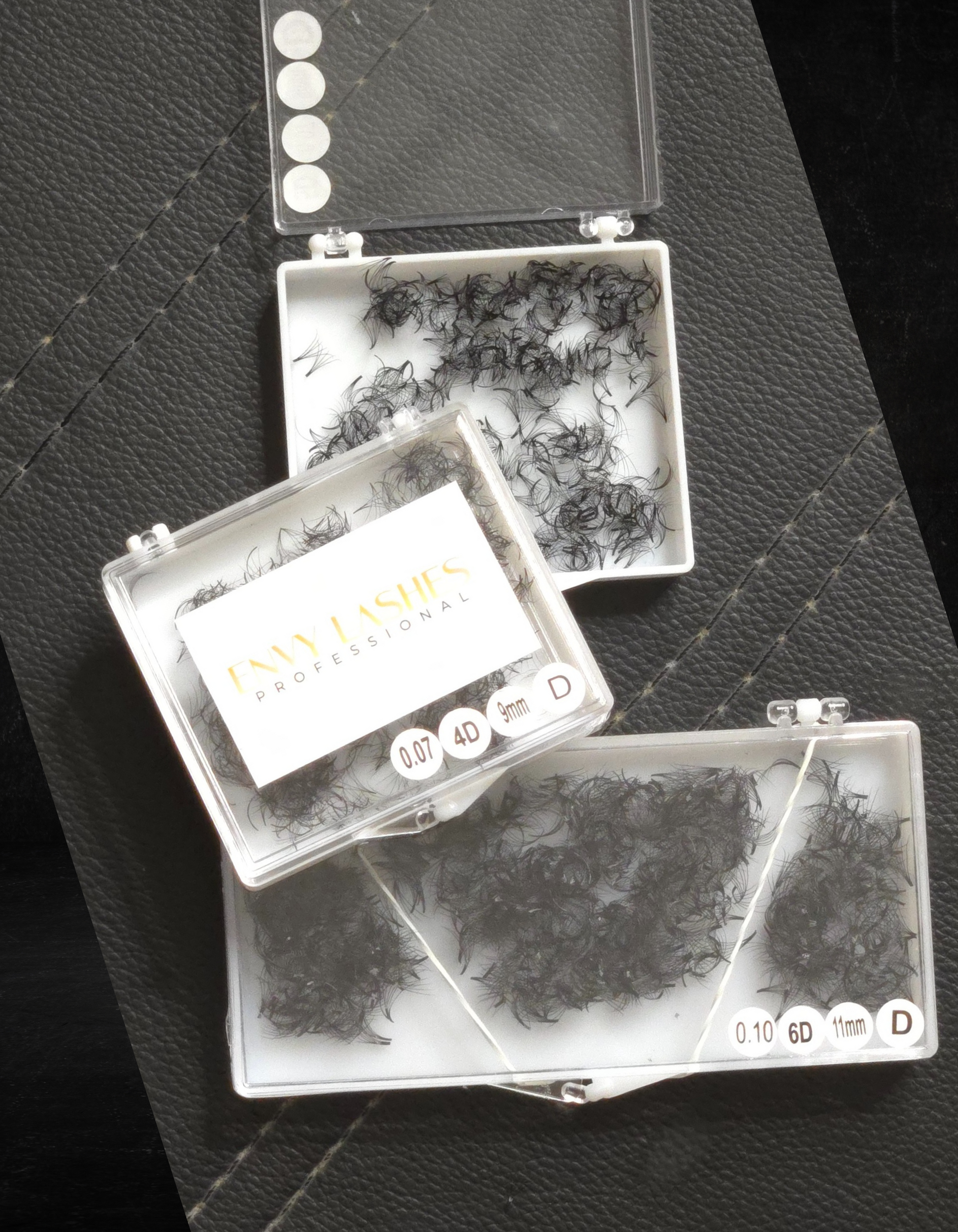 Envy Lashes Professional 4D Pro Made Fans offer a quick and easy application with a heat-bonded base that needs just one adhesive dip. Each tray contains 500 or 1000 ultra-fine synthetic lashes in lengths from 7mm to 14mm. These fans provide lasting volume and natural-looking results, helping you work efficiently without lowering quality.
