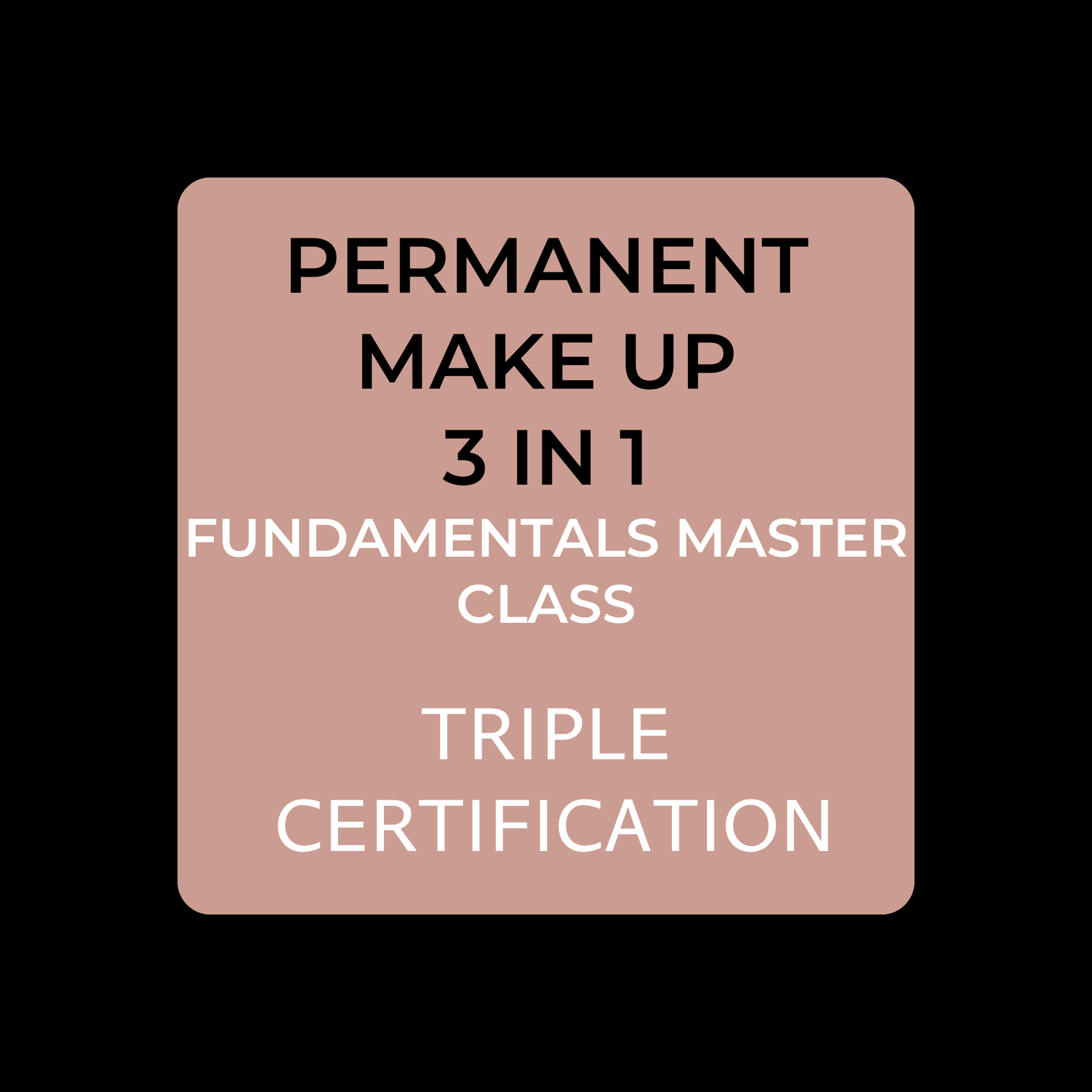 A: The course covers triple certification in Permanent Makeup, including Ombre Powdered Eyebrows, Nano Stroke Eyebrows, Beginner Eyeliner, and Lip Blush.